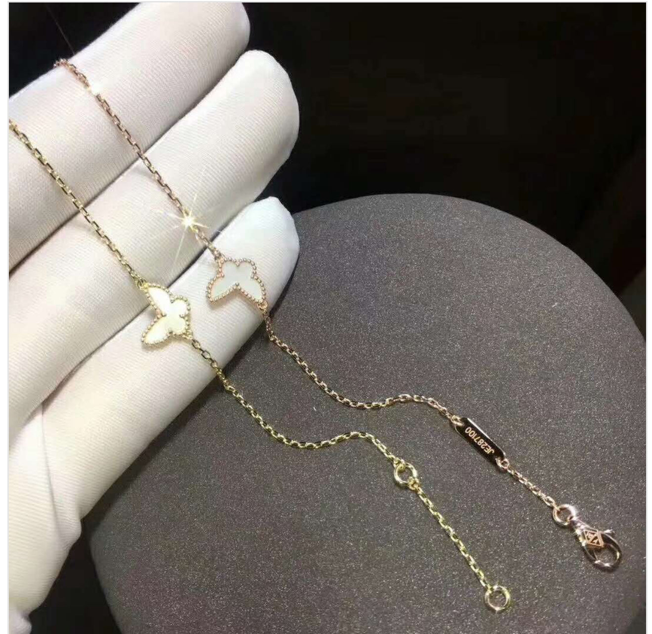 Authentic Vca 18k Gold Vintage Alhambra Bracelet Mother of Pearl Anklets butterfly